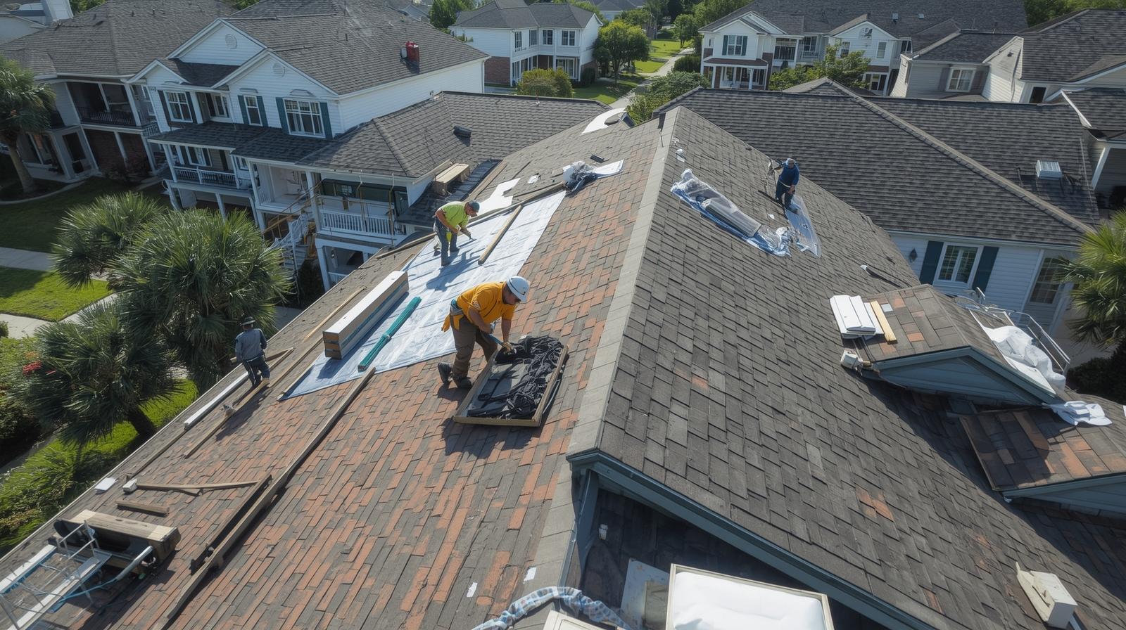 Big Foot Roofing was contracted to replace the aging asphalt shingle roof of a 20-unit residential complex in West Ashley. The previous roof showed extensive storm damage, leaks, and material deterioration.